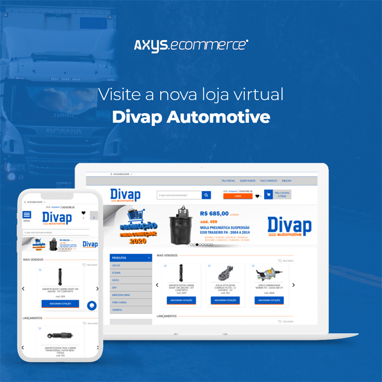 A Divap é distribuidora de peças para caminhões da linha pesada multimarcas, atua principalmente nas linhas Volvo e Scania.