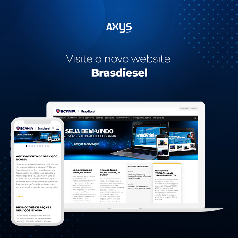 O novo website foi desenvolvido com layout personalizado, preparado para acesso via dispositivos móveis, dando autonomia para a Brasdiesel para a gestão completa dos conteúdos do site.