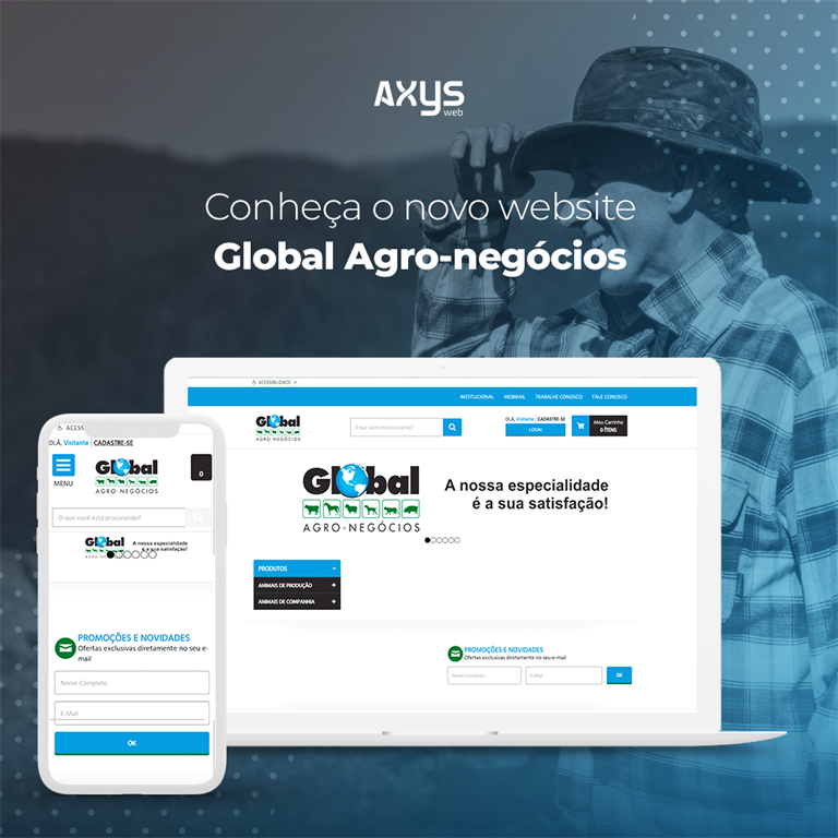 O novo website foi desenvolvido com sistema de cotação, possui layout personalizado, preparado para acesso via dispositivos móveis e dando autonomia para a Global Agro-Negócios para a gestão completa dos conteúdos do site.