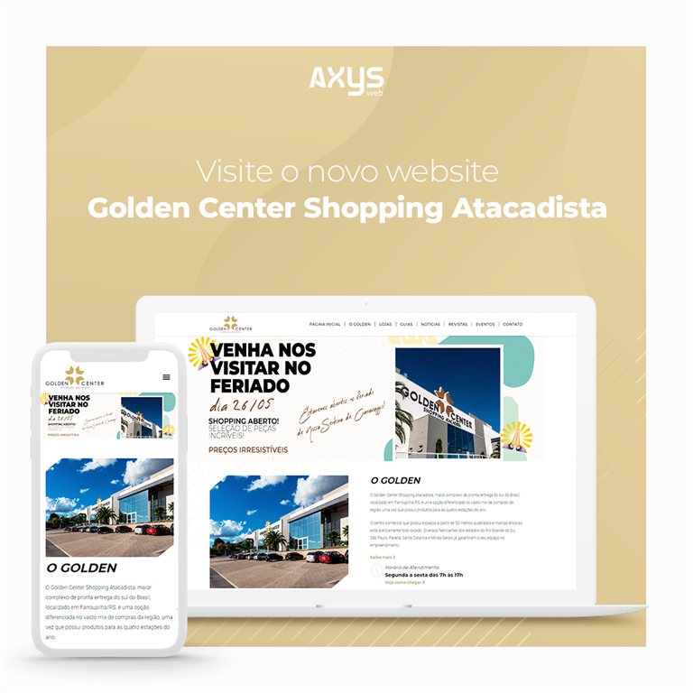 O novo website foi desenvolvido com layout personalizado, preparado para acesso via dispositivos móveis e dando autonomia para o Golden Center para a gestão completa dos conteúdos do site.