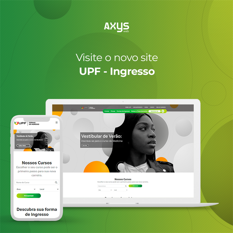 O novo website Ingresso UPF foi desenvolvido com layout personalizado, preparado para acesso via dispositivos móveis, dando autonomia para a UPF na gestão completa dos conteúdos e cursos do site.