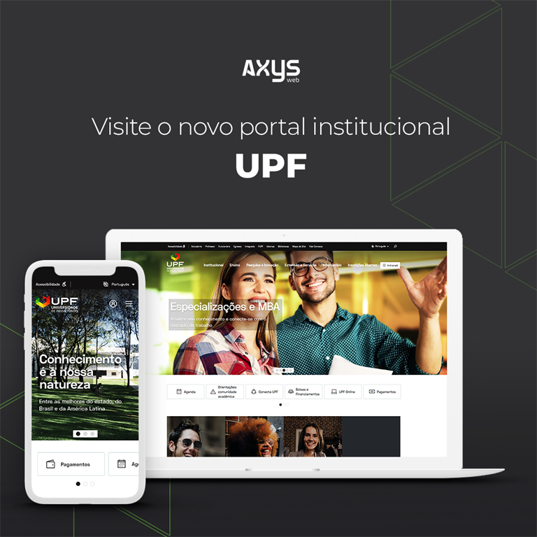 O novo Portal UPF foi desenvolvido com layout personalizado, preparado para acesso via dispositivos móveis e dando autonomia para a UPF para a gestão completa dos conteúdos do website.